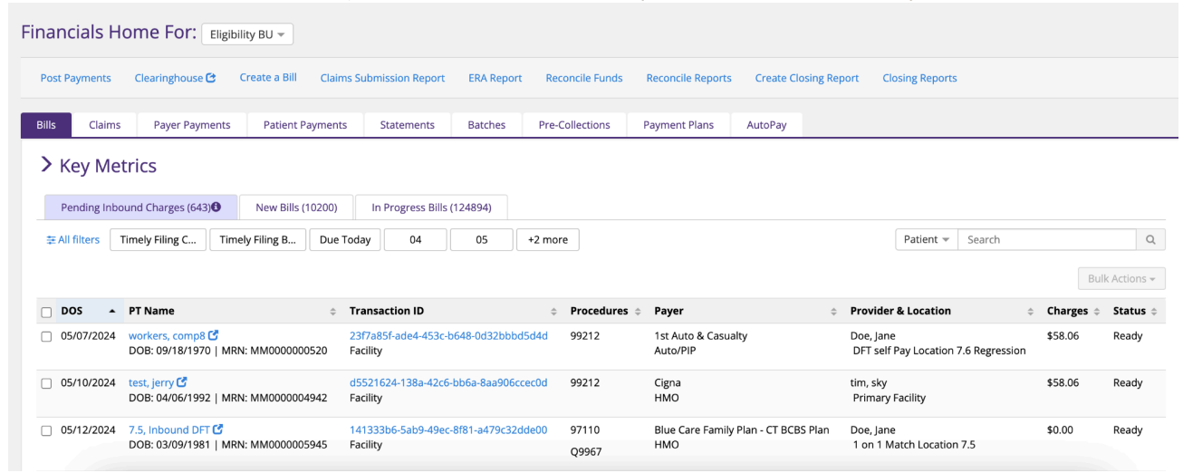 Customers that use this functionality have an ‘Inbound Charges’ queue in their ‘Financials’ experience: